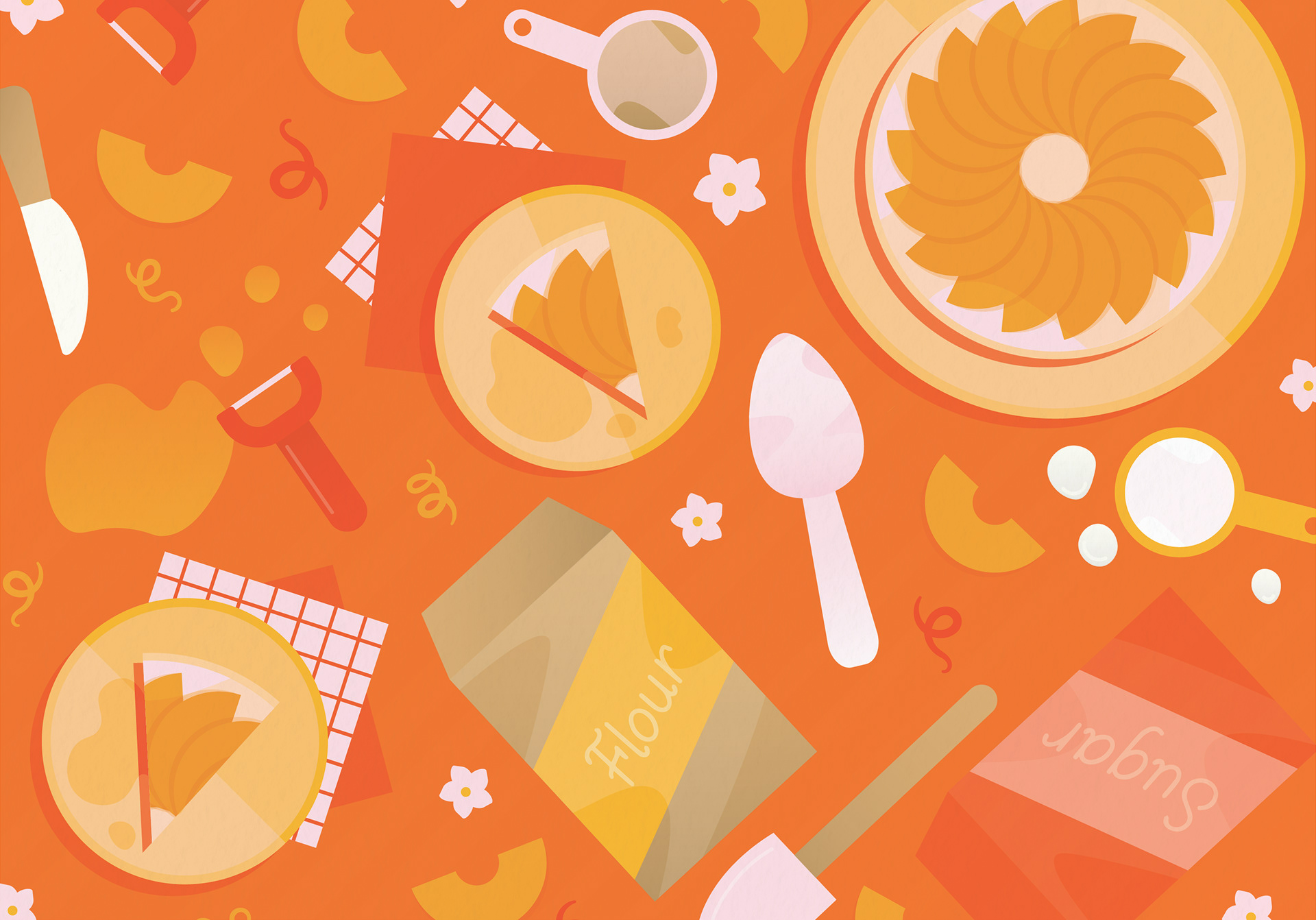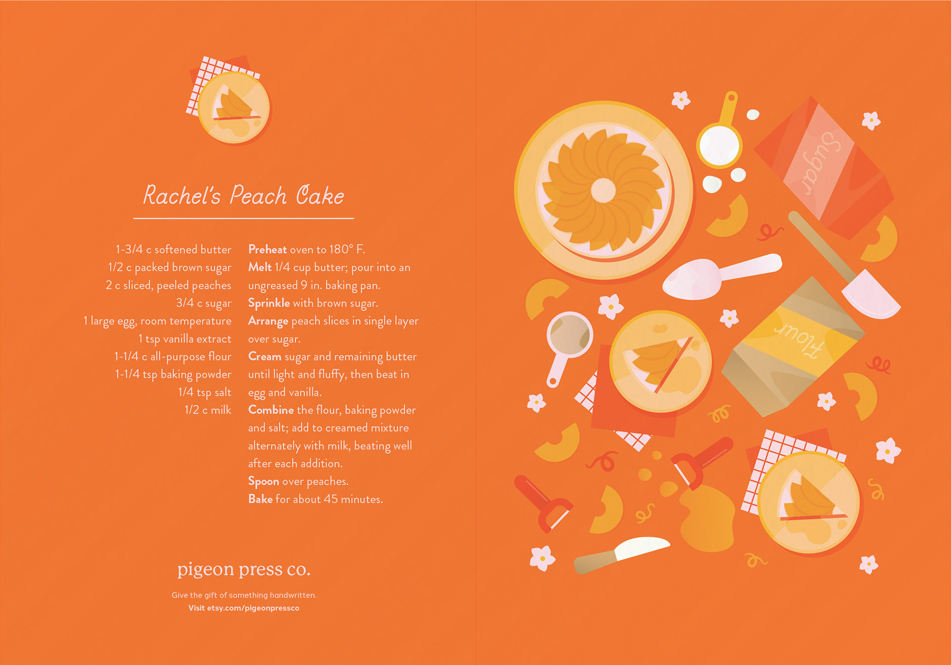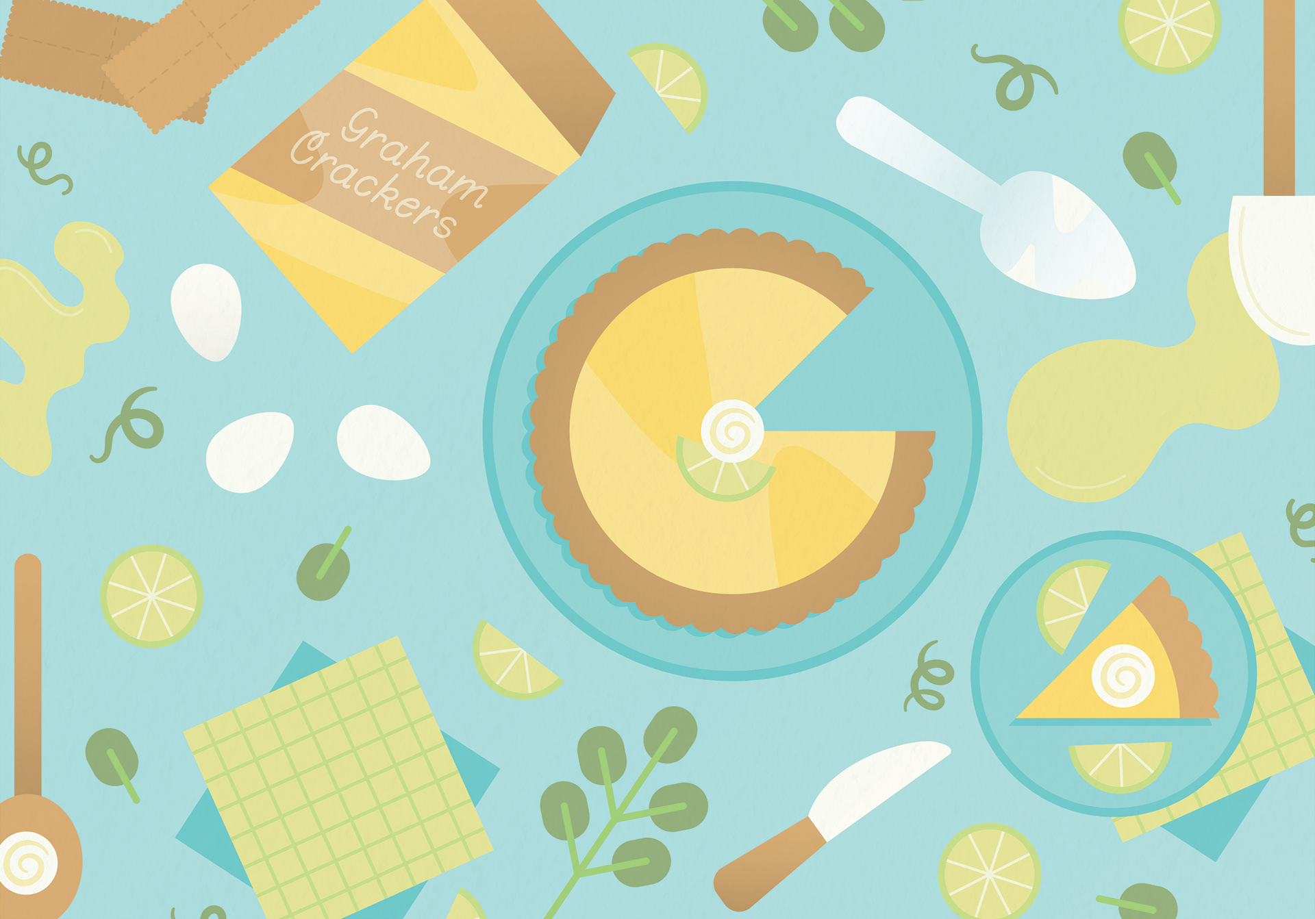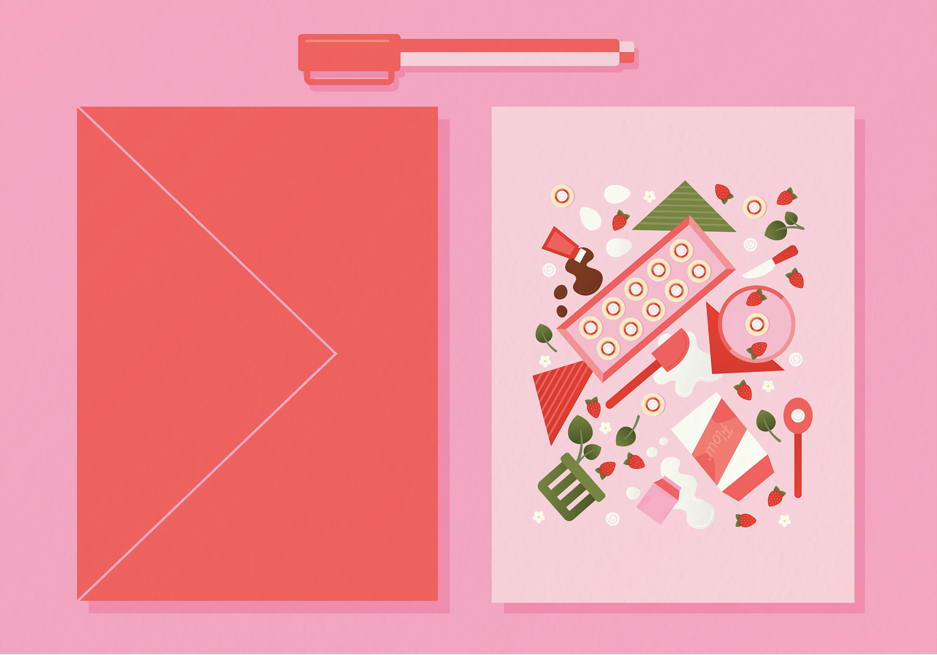 These cards represent the first installment in a series of Seasonal Recipe Greeting Cards. The summer designs are inspired by recipes that have been handed down in my family from generation to generation and are named after a family member. I began each design by looking at the recipe and deciding which ingredients and kitchen utensils to include. I then did a primary sketch using Procreate before refining the illustrations in Adobe Illustrator.